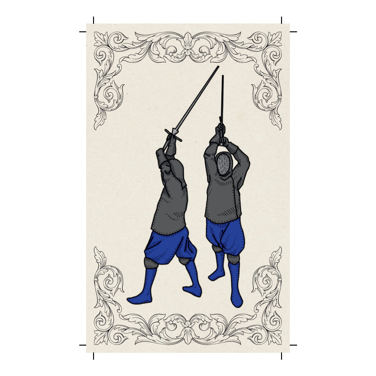 By popular demand, they’re finally here! Our tarot-sized HEMA flashcards cover the 10 guards of the Joachim Meyer longsword system, featuring custom illustrations on the front and reference info on the back. Requested by dozens of students—supplies are limited, and this may be the only print run. Get yours while you can!